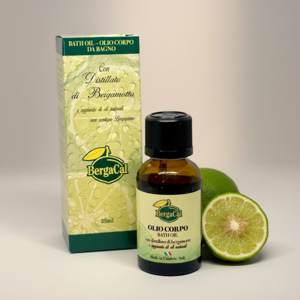 Entdecken Sie die verwöhnende Kraft des echten Bergamotte-Öls aus Kalabrien. Das BergaCal Bergamotte Körperöl in der praktischen 25-ml-Reisegröße pflegt Ihre Haut intensiv, spendet Feuchtigkeit und hüllt Sie in einen frischen, zitrusartigen Duft ein – von morgens bis abends.